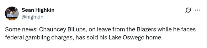北京时间12月7日,据开拓者队记Sean Highkin报道,因面临联邦赌博指控而被开拓者队停赛的比卢普斯,已经卖掉了他在波特兰奥斯威戈湖的房产。