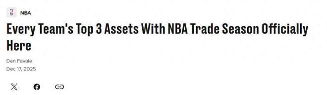 海量大鱼准备开抢!在赛季中期交易市场全面来临之际,美媒《BR》晒出30队手中TOP3交易筹码,其中火箭队无谢泼德,快船哈登入选。